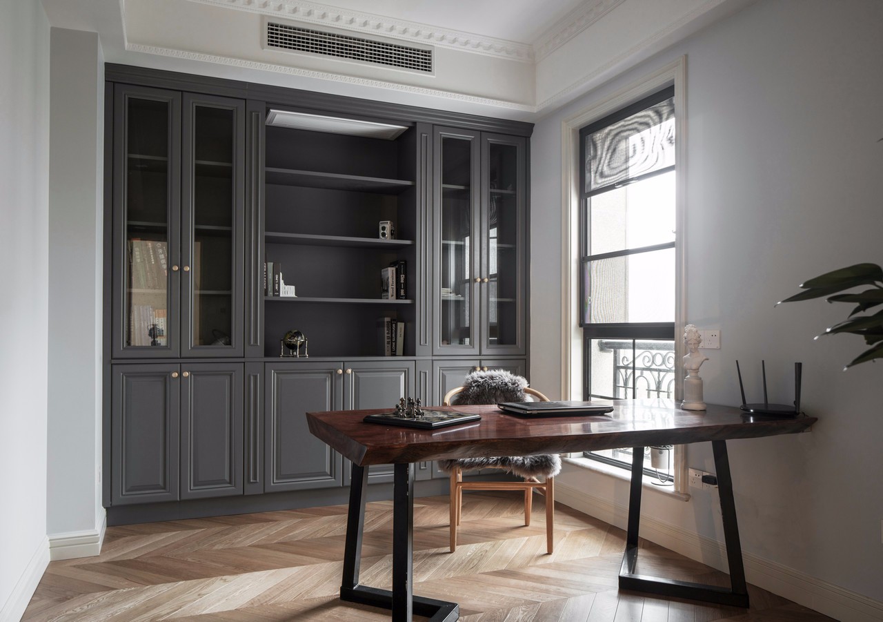 書房空間開放之后,光線充足,空間自由,全實木材質(zhì)的定制書桌書架,搭配原木色的椅子,十分有質(zhì)感。 這大概是房東的私人空間,墻面的部分做了櫥柜,方便擱置書籍和小禮物的地方。顏色調(diào)性和廚房櫥柜保持了一致。 書桌買了簡易型又文藝的桌子,甚至它可以搖身一變,變成茶室(自行想象)。靠近窗戶的位置,也是為了采光較好,方便閱讀和思考。有時候頭腦需要休息的時候,還可以向著窗外吹吹風,發(fā)發(fā)呆。